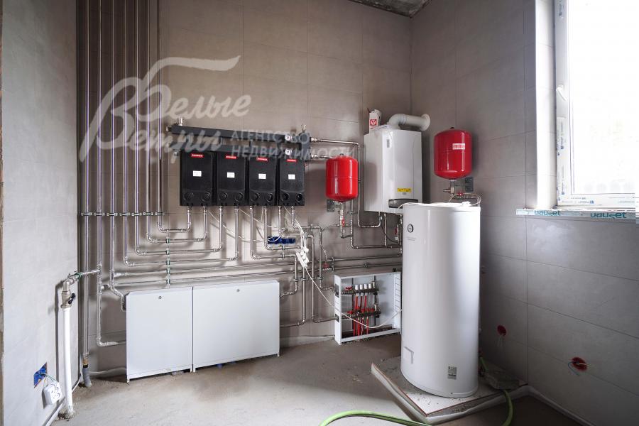Описание внутренней отделки: монолитная лестница шириной 110 см. Все коммуникации заведены в дом.