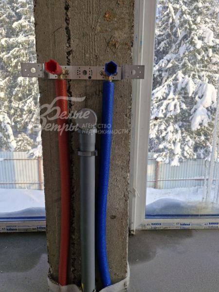 Инженерное обеспечение: проведена разводка инженерных коммуникаций с подводом к сантехническим точкам и организацией временной схемы электроснабжения. Установлены: настенный газовый котел BAXI Luna 3 Comfortю мощностью 31 кВт, бойлер косвенного нагрева STOUT AQUATEC Royal Thermo на 150 л, две уличные видеокамеры, обеспечивающие контроль за строительной площадкой